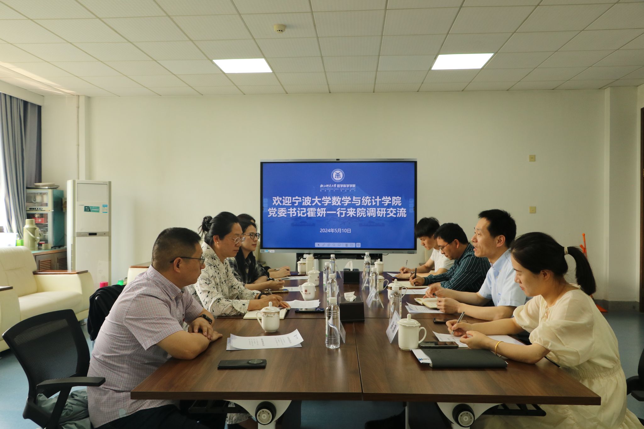 调研组的到来表示欢迎。随后,双方简述了各自学院党建工作基本概况,并围绕省级标杆院系验收、双带头人工作室建设等党建“双创”工作及数学建模竞赛、数学科普基地、学生事务等业务工作进行了交流,并着重就如何调动教工支部积极性,进一步提升党建与业务的融合等问题进行了深入探讨。