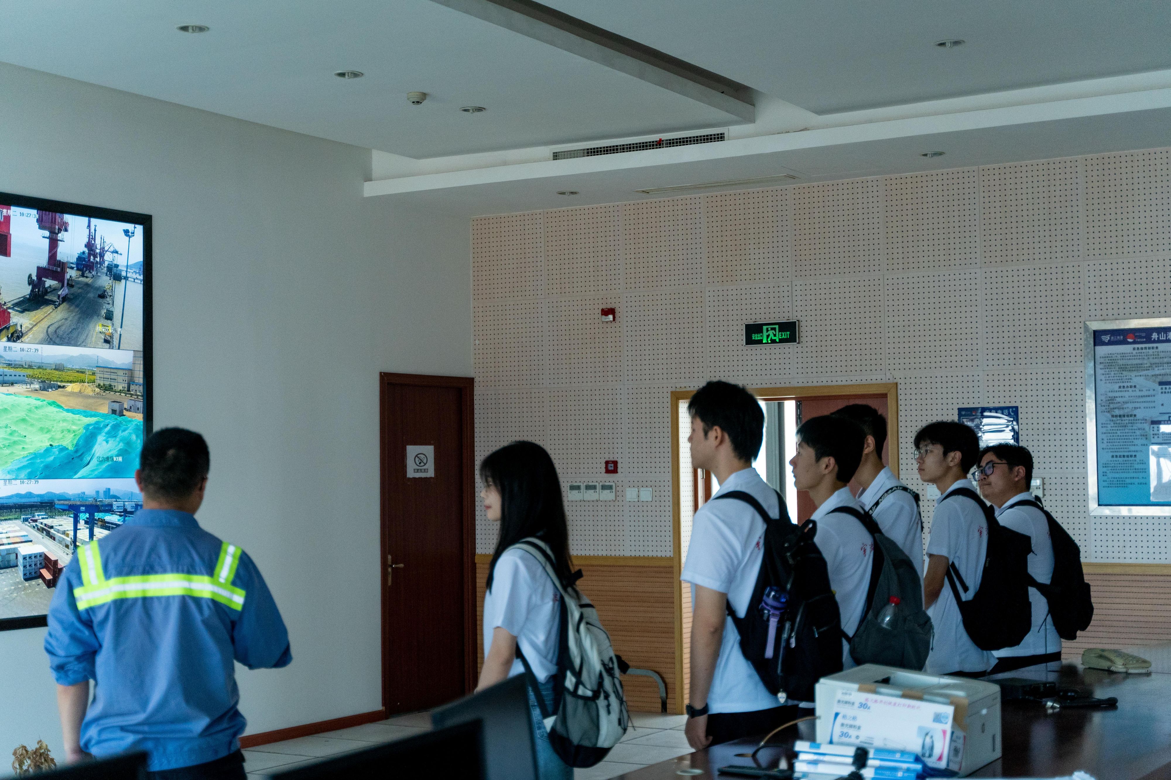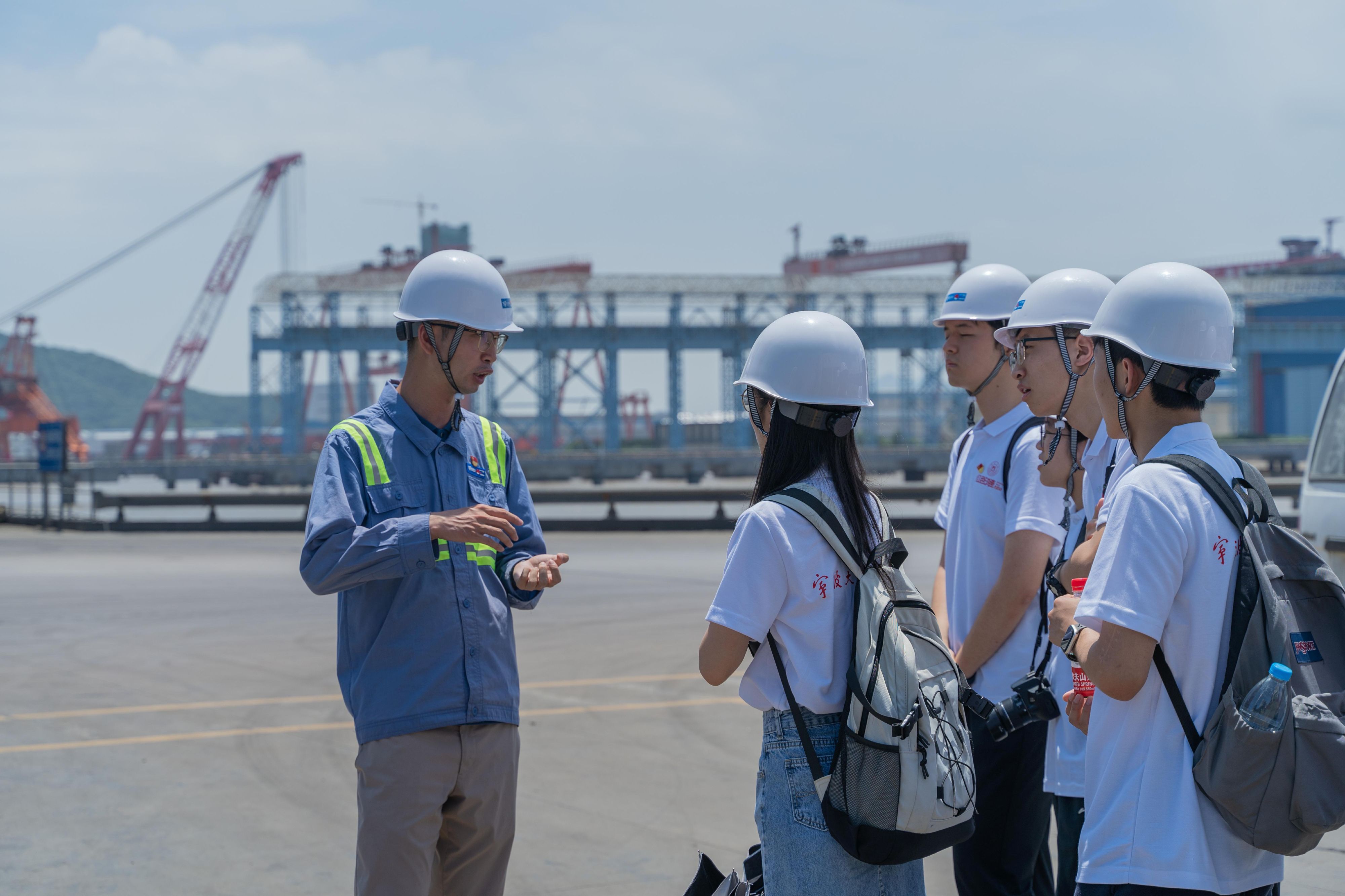 党员同志们在综合保税区码头有限公司总经理、宁波大学校友李佳骏的陪同下前往码头进行近距离参观,在切身领略港口规模及设施运行后,李佳骏校友向大家介绍了舟山港近些年来遇到的挑战,让大家深刻感受到舟山港的飞速发展离不开习总书记的谋篇布局,离不开舟山港工作人员们肯吃苦、肯奋斗的时代精神。